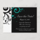 Black White Teal Floral Swirl Wedding InvitationDesigned by Angela CuteComfy Designs