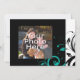 Bold and striking modern contemporary black wedding invitations with white and aqua teal turquoise accents, with festive swirl scroll leaf background. Customise online with your wedding details.