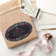 Make a lasting impression with this elegant and luxury product label design featuring a black and white word cloud border with a shimmery pink frame.