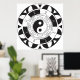 digital art yin yang black and white design with mandala. decorative black and white mandala with yin yang symbol in the centre of a circle with modern geometrical shapes inside the circles including triangles and half circles. black and white digital art design of a yin yang symbol.