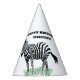 Throw a wild party with custom paper hats featuring a realistic style illustration of a black and white zebra standing in some green grass. These party supplies are ready to be personalised with your own custom message.