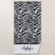 This classic black and white zebra print is great for the beach and pool. Click the custom button to change initials and name.