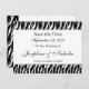 This zebra print design in black and white with its ornate lettering is an elegant way to send out your save the date announcements.