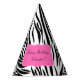 Black and White Zebra Print with Hot Pink Birthday Party Hat