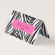 Black and white zebra pattern folded business card. A hot pink shape in the middle to add your text.