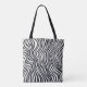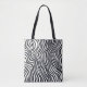 This stylish tote bag features a striking black and white wavy line pattern resembling zebra stripes. The design creates a visually appealing and unique accessory. The black handles provide a comfortable and sturdy grip, making it ideal for everyday use, shopping, or as a thoughtful gift for friends and family.