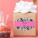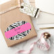 Black and white zebra pattern with hot pink accent. White stripes imitating zebra on a black background. The design features a black and white zebra print and a hot pink band in the middle.