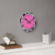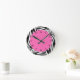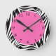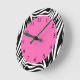 Black and white zebra pattern with hot pink accent. White stripes imitating zebra on a black background. The design features a black and white zebra print and a hot pink circle in the middle.