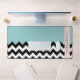 Black and White Zigzag, Chevron, Blue, Your Name Desk Mat