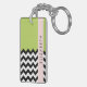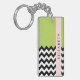 Black and White Zigzag, Chevron, Green, Your Name Key Ring