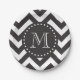 Black and White Zigzag Chevron Monogram Paper Plate