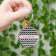Black and White Zigzag, Chevron Pattern, Your Name Key Ring