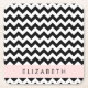 Black and White Zigzag, Chevron Pattern, Your Name Square Paper Coaster