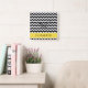 Black and White Zigzag, Chevron Pattern, Your Name Square Wall Clock