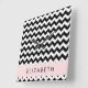 Black and White Zigzag, Chevron Pattern, Your Name Square Wall Clock