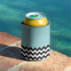 Black and White Zigzag Pattern, Chevron, Blue Can Cooler