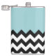 Black and White Zigzag Pattern, Chevron, Blue Hip Flask