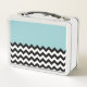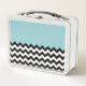 Black and White Zigzag Pattern, Chevron, Blue Metal Lunch Box