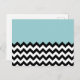 Black and White Zigzag Pattern, Chevron, Blue Postcard