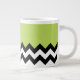 Black and White Zigzag Pattern, Chevron, Green Large Coffee Mug