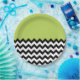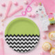 Black and White Zigzag Pattern, Chevron, Green Paper Plate
