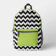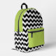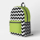 Black and White Zigzag Pattern, Chevron, Green Printed Backpack