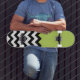 Black and White Zigzag Pattern, Chevron, Green Skateboard