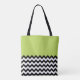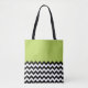 Black and White Zigzag Pattern, Chevron, Green Tote Bag