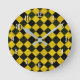 Black and yellow chequered pattern round clock