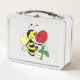Black and yellow hornet wasp bee with a red rose metal lunch box