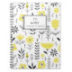 Black and Yellow Scandinavian Floral Pattern Notebook