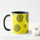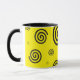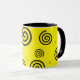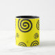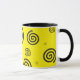 This 11-oz mug was designed to make your tea, coffee, or hot chocolate time a happy time. It has a yellow background and black swirl pattern, and the handle and interior match the swirls. This mug is the perfect gift to make someone in your life happy.