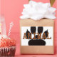 A black animal paw and claw prints with brown text. Original design.