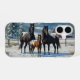 Black Appaloosa Horses on a Farm in Winter iPhone 16 Case