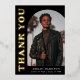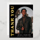 Stylish and trendy graduation thank you card featuring the graduate's photo on the front with an offset arch photo frame. "Thank You" is displayed in gold foil retro lettering on a black background. Personalise the front of the arch photo graduation thank you card by adding the graduate's name, school, and graduation year. The card reverses to display your typed or handwritten message. The black and gold foil graduation thank you card is perfect for both high school and college graduates.