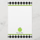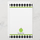 Stationery featuring a black argyle border over top and bottom with green trim. Personalise with your name at bottom under illustration of green apple.
