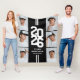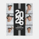 Modern black & white athletic graduation blanket featuring an eye-catching class year layout in a varsity font, a photo collage of the grad, two white stripes, their name, and the school or college they attended.