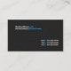 Elegant black business card with blue highlights. Uncluttered look evokes professionalism and creativity. Excellent for various professionals in business, as well as creative industries, who prefer simple elegance and style in the promotional materials. Premium or luxury paper recommended for best look and feel.