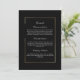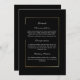This black background with a gold frame is an enclosure card that provides all the details for your guests. All information is able to be customized and a QR code on the back is available to give your guests the ability to see more information on your website