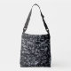 black background white doodle bag. crossbody bag