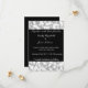 A wedding invitation featuring is a black background with faux glamours silver inspired design with silver text.