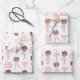 Pretty Ballerina personalised wrapping paper featuring three different ballerinas with a bouquet of flowers, ballet slippers and a crown. Custom text greeting and personalised name makes this paper great most special occasions.