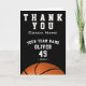 Black Balls Sports Thank you Coach Card. Basketball thank you coach card with coach name, team name, year, player`s name and number. Great thank you card for the basketball team coach!