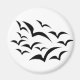 This magnet features a collection of simple images of bats flying together in a cloud pattern. The bats are black and the background is white. Kids are sure to love this cute design.