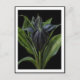 Pictured On A Black Background Is A Black Flowering Bat Plant With Green Foliage.