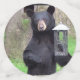 This pretty bear is eating from a bird feeder. It always amazes me that they sit and eat those little sunflower seeds.
