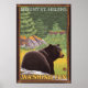 Black Bear in Forest - Mount St. Helens, Washington - Vintage Travel Poster was created in 2007. This image depicts scenes from Mount St. Helens, WA.