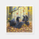 A black bear joyfully rolling in a vibrant pile of autumn leaves, embracing the beauty of the season while a bluejay watches overhead.