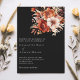 For an elegant and romantic wedding. A black coloured background decorated beige, and burnt orange coloured florals. Personalise and add your names and details.