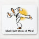 Martial Arts figure in a gi uniform with a black belt highlights this mouse pad, with the phrase Black Belt State of Mind. Many more products with the Black Belt State of Mind design also available in this shop.